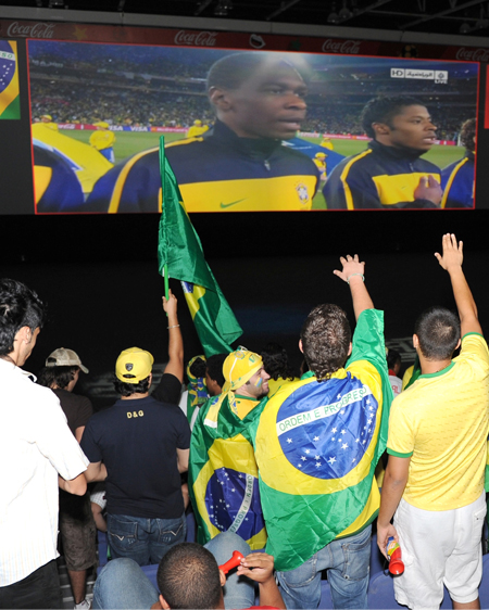 Brazil fans enjoying the spirit of the FIFA World Cup games aired live on Dubai’s biggest screen in Sheikh Saeed Hall 3 at the Dubai World Trade Centre |