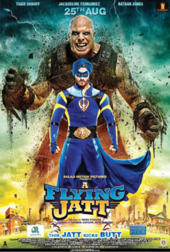 | Movie Synopsis : Flying Jatt is a humorous and enduring tale of a reluctant super hero who is afraid of heights. He both loves and fears his mother and in spite of having super hero powers, he still has real life problems like buying vegetable and cleaning the ceiling fans for his mom. His alter ego is Aman who is a martial arts teacher at a local school and gets his powers from a Holy Tree (Nature). His nemesis is Raka who gets his strength from the man made pollution. The more the people pollute, the stronger he becomes. The Flying Jatt is India’s youngest super hero. |